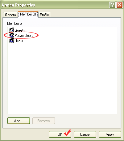 این لیست نام Power Users را انتخاب و تایید